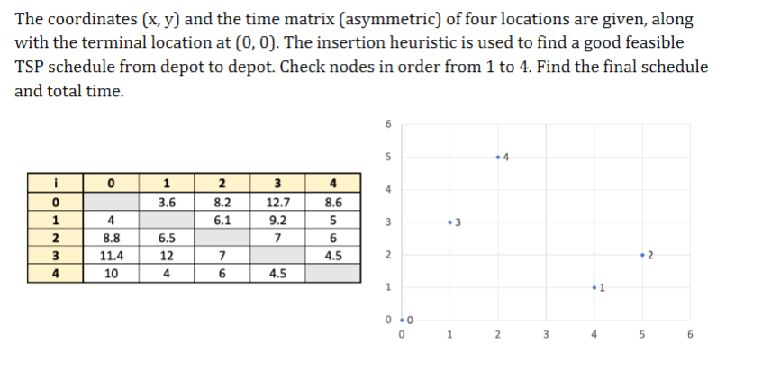 Solved The coordinates (x,y) and the time matrix | Chegg.com