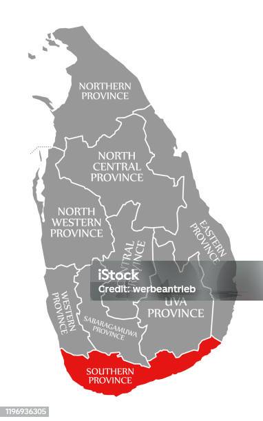 Southern Province Red Highlighted In Map Of Sri Lanka Stock